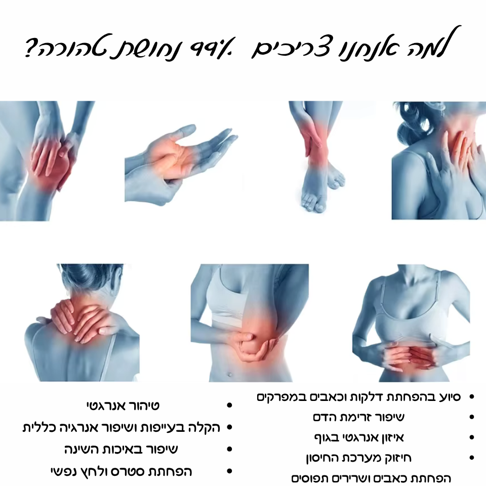 אנשים רבים בעולם מדווחים על הקלה בכאבי פרקים, שרירים ועייפות לאחר שימוש קבוע בצמידים מגנטיים.